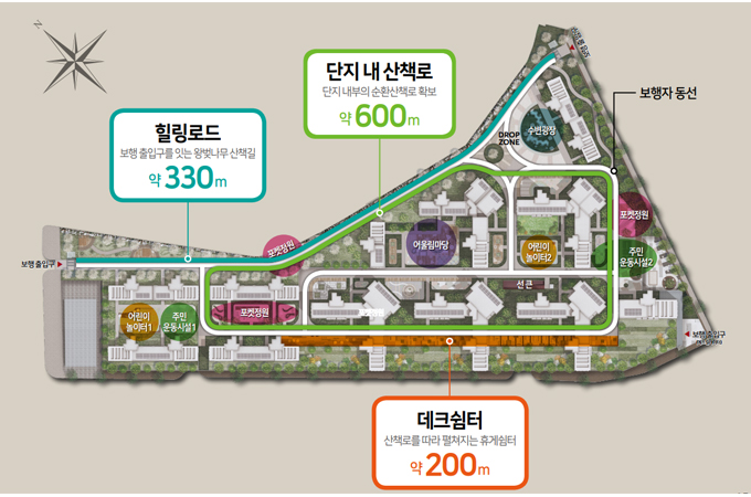 주차장 지하화와 드랍존으로 보행 중심의 안전한 단지조성